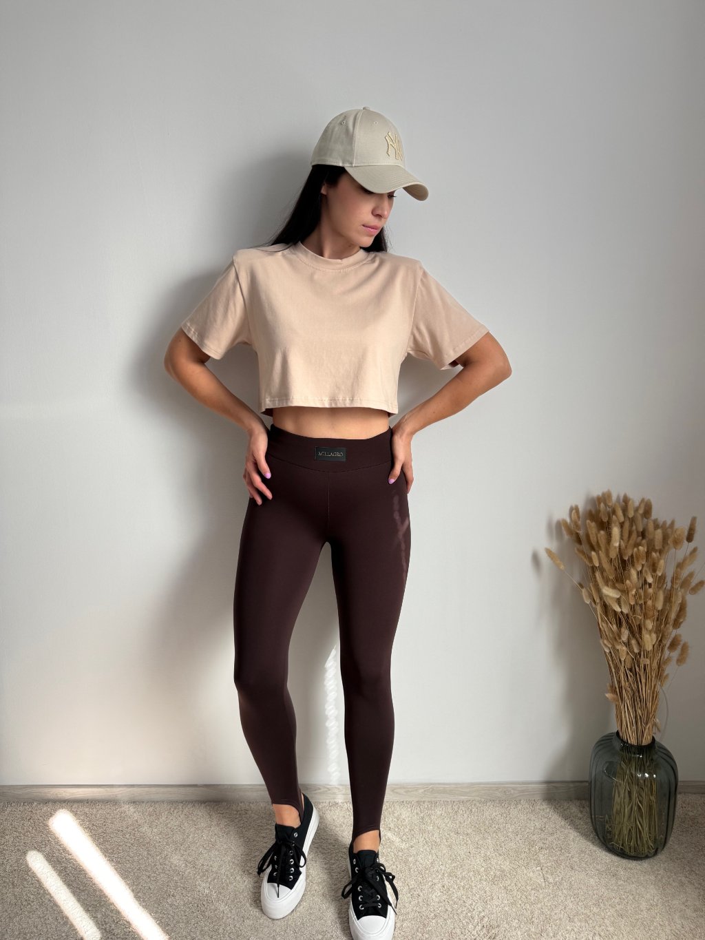 Legíny kaliopkového strihu, z mierne zatepleného elastického materiálu. V páse je široká guma, ktorá vytvaruje postavu, na páse nášivka značky. Dostupné v dvoch farebných variantoch. UNI veľkosť sediaca na XS-M, prípadne menšie L.
